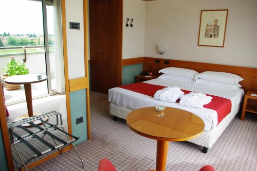 Alliance Hotel Bologna Airport has 143 Standard and Superior rooms, all feature an LCD screen satellite television, Sky Sport and cinema channels, a direct dial telephone, air conditioning, heating, an alarm clock, a wardrobe, a desk and an en suite bathroom with a hairdryer.