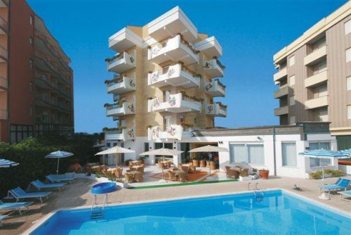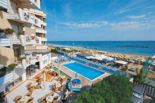 Budynek hotelu, rozpoznawalny przez charakterystyczne balkony z mozaiką w śródziemnomorskim stylu (wykonane przez słynnego artystę z Pesaro) oferuje wspaniałe, panoramiczne widoki i jest doskonałym miejscem do pełnego relaksu wypoczynku.