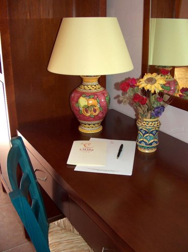 All of the rooms are comfortable and bright, decorated with precious Sicilian ceramics and furnishings of a typical local style, climate controlled and equipped with refrigerated mini-bar, colour TV, safe deposit box and an ample panoramic terrace.