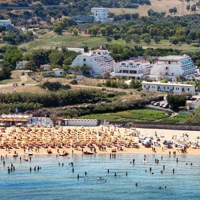 Take the Adriatic A14 Bologna – Bari motorway and exit at Poggio Imperiale. Continue along the Garganica highway, and then take the coastal roads for Rodi Garganico, San Menaio, and Peschici.