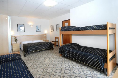 The quad room has a double bed and a bunk bed.