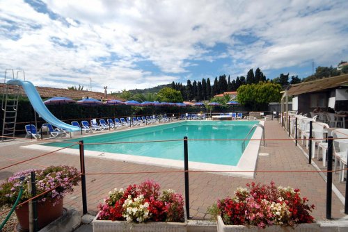 The swimming pool has a slide and a Jacuzzi tub, and is located in a beautiful secluded garden. Deck chairs are also available for guests to sunbathe.