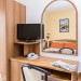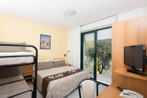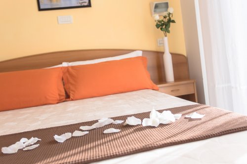 Tutte le camere, arredate modernamente, dispongono di climatizzatore, balcone, TV color satellitare, telefono, servizi privati con box doccia e asciugacapelli.