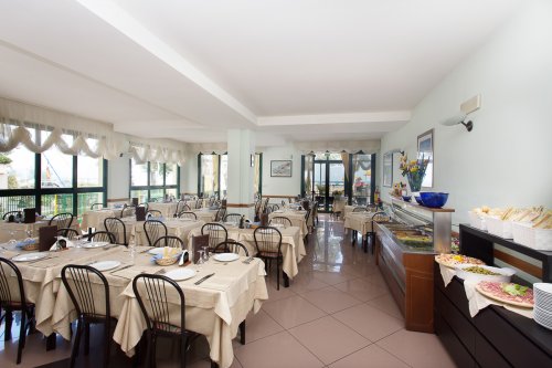 La cucina, punto di forza dell'hotel, è particolarmente curata ed offre le migliori specialità della tradizione romagnola. Ogni giorno a pranzo e a cena vi è una scelta fra tre menù ( pesce tutti i giorni), con ricco buffet di verdure, mentre per colazione vi è un ampio buffet di dolce e salato con tutte ciambelle e crostate fatte in casa.