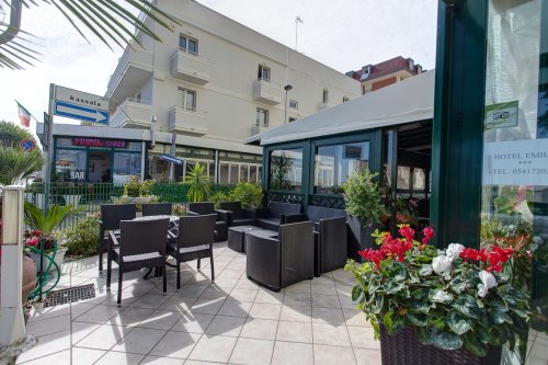 L'Hotel Emilia sorge nel lungomare di Torre Pedrera, in ottima posizione rispetto alla caratteristica spiaggia, alla Fiera di Rimni, a Igea Marina e Bellaria, nonchè all'entroterra riminese ricco di borghi medioevali e tradizioni storiche e enogastronomiche. Da qui è inoltre agevole raggiungere i parchi divertimento che caratterizzano la zona, in particolare Fiabilandia posto a brevissima distanza.