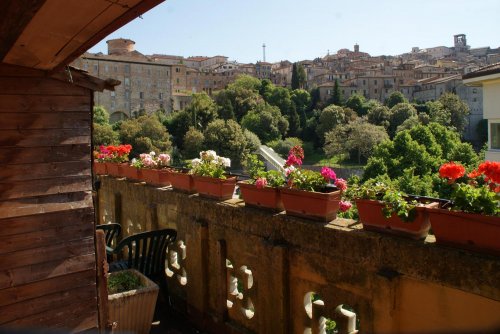 Niektóre pokoje posiadają tarasy, a z większości rozpościera się piękny widok na nasycone zielenią wzgórza Umbrii.