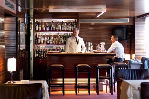 Dobrze zaopatrzony bar znajduje się w przestronnym pomieszczeniu z dużymi oknami, z których goście mają widok na ulice Corso Europa i Corsia dei Servi.
