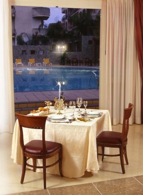 The restaurant, which overlooks the outdoor swimming pool, is managed by experienced professionals who propose gastronomic delights and specialities of both Sicilian and international cuisine.
