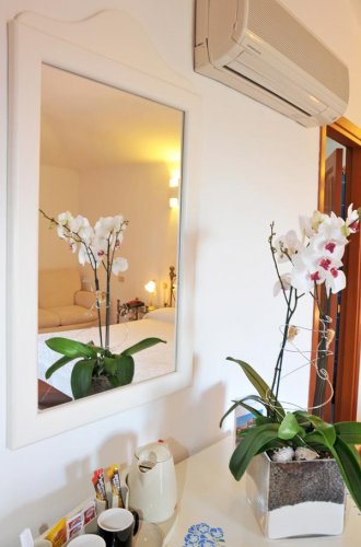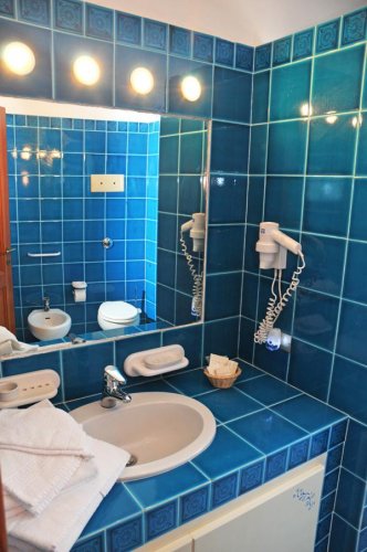 The guest rooms are decorated in wood and typical Sardinian fabrics; they are equipped with satellite colour television, a minibar, air conditioning, a direct dial telephone, and most of the rooms have a terrace or patio and an en suite bathroom with a shower and a hairdryer.