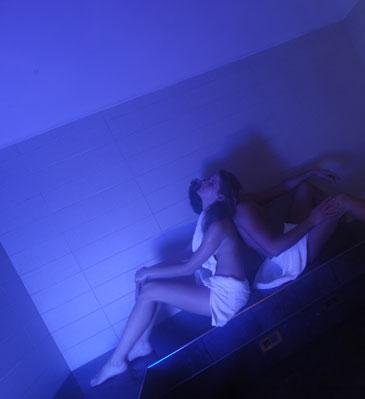 The rooms are equipped with a state of the art stereo system, an LCD flat screen television, and an open bathroom area with a hydromassage bathtub.