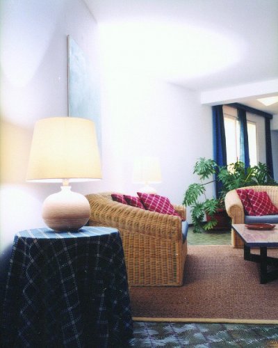 The Hotel restaurant, spacious and luminous, stands out for its unique lighting and its white painted Indian wicker panels.