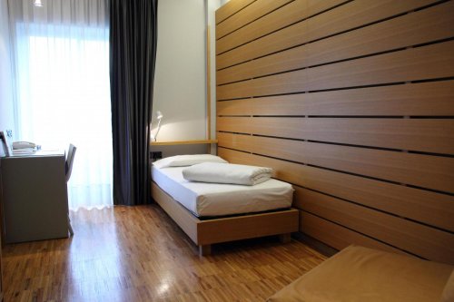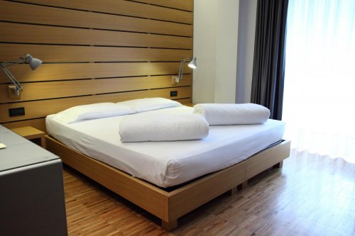 The guest rooms of the Hotel Mirage are characterised by warm wood furniture and relaxing colour schemes.