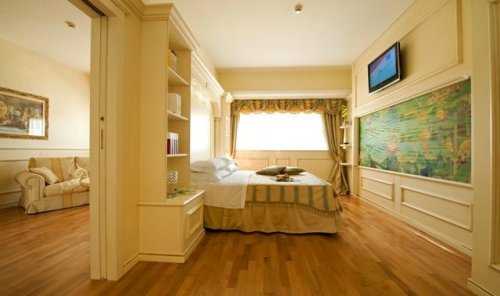 Dwa apartamenty Orchidea i Tramonto są dodatkowo udekorowane boazerią i prestiżowym, wysokiej jakości marmurem.