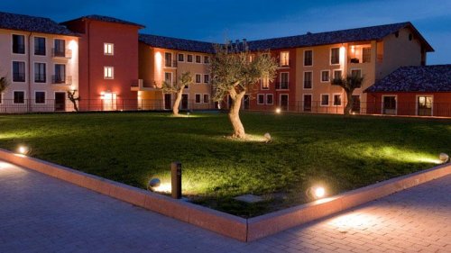Follow directions for Gardaland and on reaching the park entrance, continue for 500m towards Pacengo. Turn right at the first roundabout where you will find the hotel entrance.