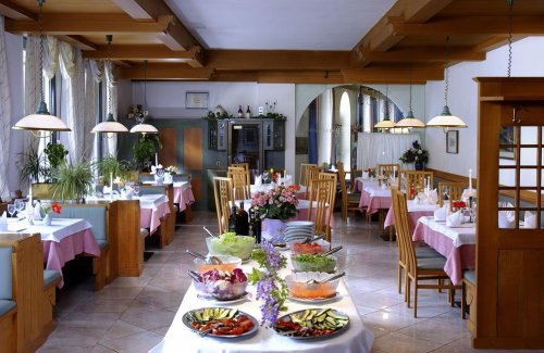 Hotelowa restauracja zaprasza na kolację codziennie od godz. 21-wszej. Proponowana kuchnia to tradycyjne dania kuchni południowotyrolskiej i włoskiej wraz z najlepszymi winami produkowanymi w wysokogórskim regionie Trydent-Górna Adyga.
