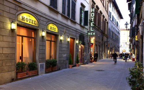 Hotel Rex położony jest w samym centrum Florencji, blisko Kościoła św. Wawrzyńca, w odległości 100 metrów od Katedry Santa Maria del Fiore zwanej także Duomo i 300 metrów od stacji kolejowej Santa Maria Novella.