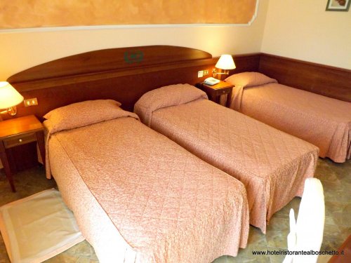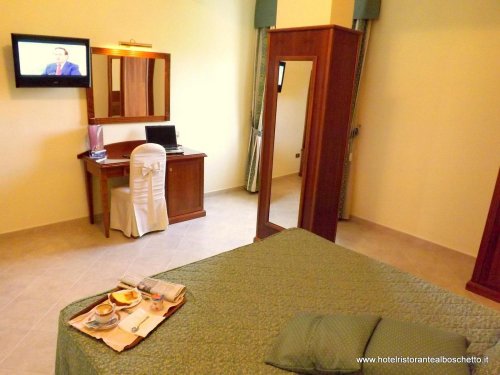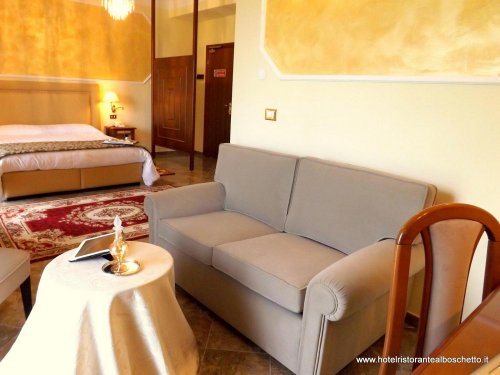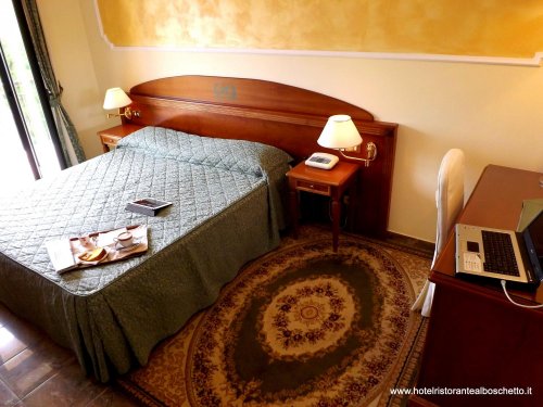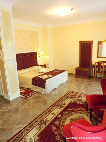 Tutti gli arredi dell'Hotel Ristorante il Boschetto sono pensati con attenzione per ricreare ambienti caldi e confortevoli per il cliente. Mobili, tendaggi e tessuti sono di qualità e buon gusto.