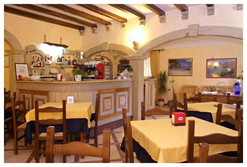 The restaurant has a spacious terrace overlooking the sea and prepares delicious gastronomic specialities including both meat and seafood, typical homemade dishes and delicious pizzas prepared in a traditional wood-burning oven.
