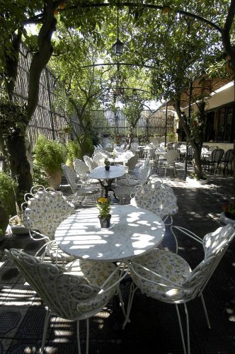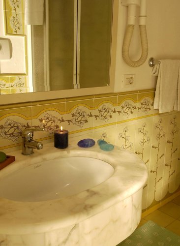 The Hotel Villa Margherita has 25 guest rooms decorated in Sorrento style with natural wood or light lacquered furniture matching the light blue ceramic tiles and fabrics.