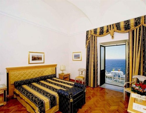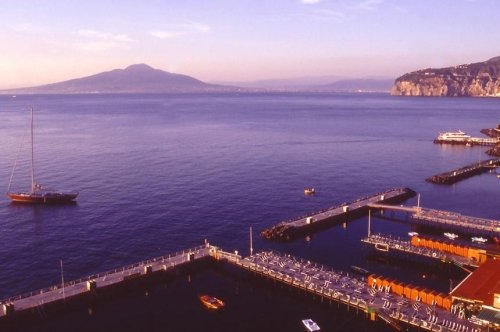 The beautiful terrace where the famous song Torna a Surriento was sung for the first time offers a breathtaking panoramic view of the area with the spectacular Mount Vesuvio in the background.