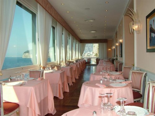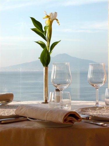 Ristorante Belvedere has a lovely view overlooking the Bay of Naples and serves exquisite traditional cuisine prepared by Chef Alfonso Iaccarino, including his famous cannelloni.