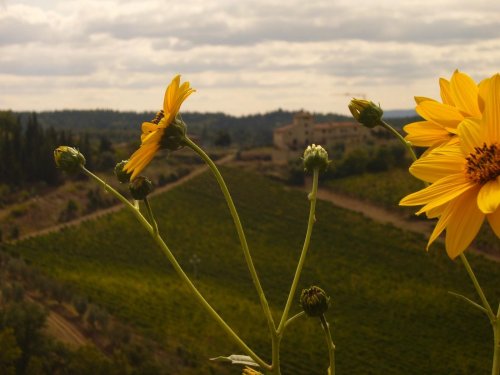 Upon reaching the cypress tree, turn right and continue on the paved road for around 6km. Go past the town of Monsanto, past the Castello della Paneretta, and after around 1km, turn left.