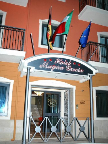 New Hotel Magna Grecia offers single rooms, double rooms and suites providing satellite color TV, radio, climate control system, bar fridge, Internet access and private bathroom with spa shower.