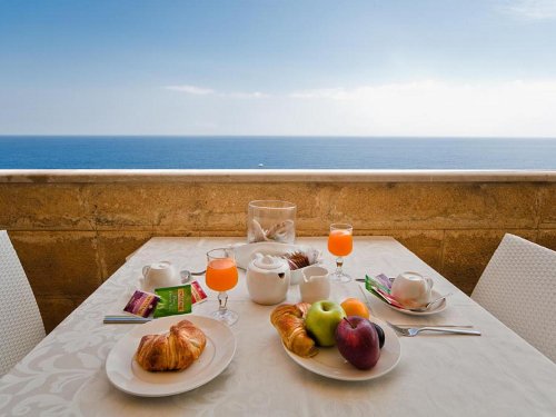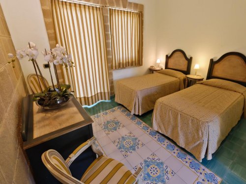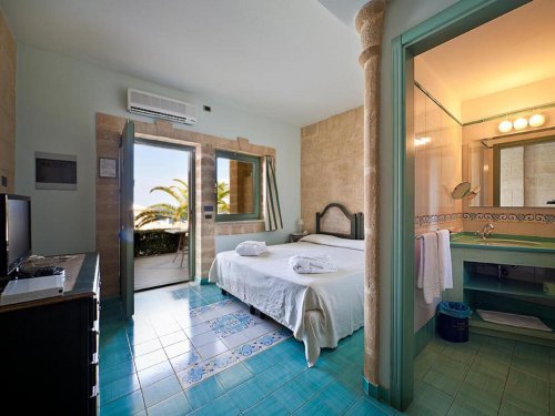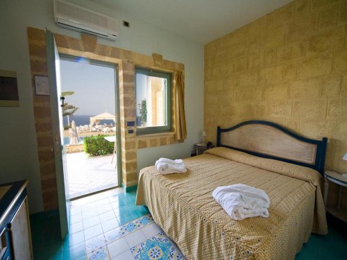 All of the Standard rooms overlook the internal courtyard whereas the Superior rooms overlook the pool. The double room Deluxe finally features a magnificent sea view.