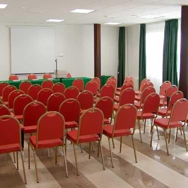 Sala konferencyjna została wyposażona w ekran, sprzęt nagłaśniający, mikforony, tablicę suchościeralną, tablicę flipchart oraz wskaźnik laserowy.