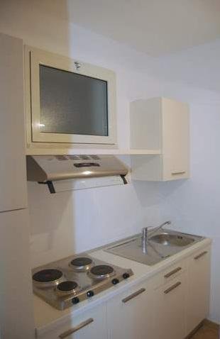 The studio apartments are made up of a kitchenette, a double bedroom and an en suite bathroom with a shower.