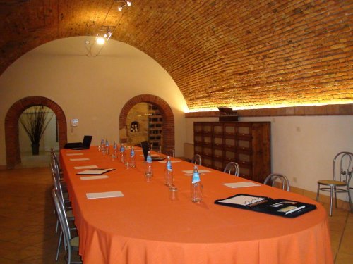 La sala è ideale per l'organizzazione di riunioni di lavoro, presentazioni di programmi o di prodotti nonché come sala per degustazioni e per banchetti.