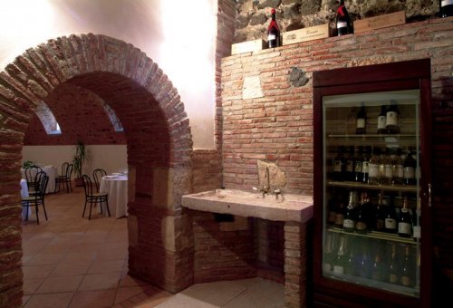 Dalla navata centrale si accede ad una "cantinetta" ricavata nella roccia di tufo, dove si trovano rinomati vini selezionati dalla casa.