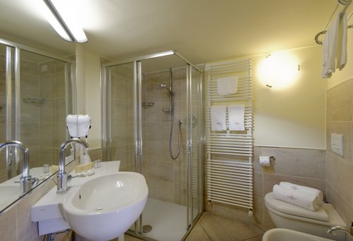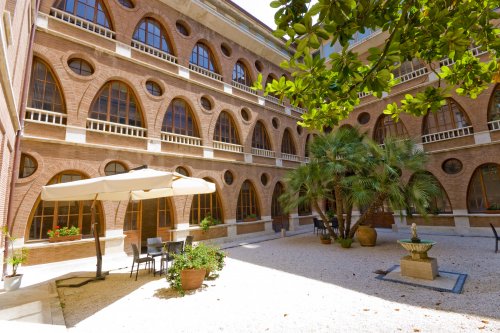 The hotel also has a park with a panoramic terrace, the perfect spot for relaxing whilst admiring the breathtaking view over the Marche landscapes and a lounge area with a lounge bar lit up by characteristic arched windows which overlook the indoor cloister garden.
