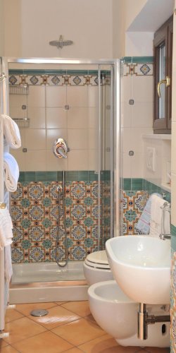 The simple, antique décor, attention to detail, and typical ceramic fixtures make these lovely rooms unique and original.