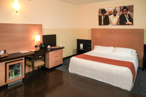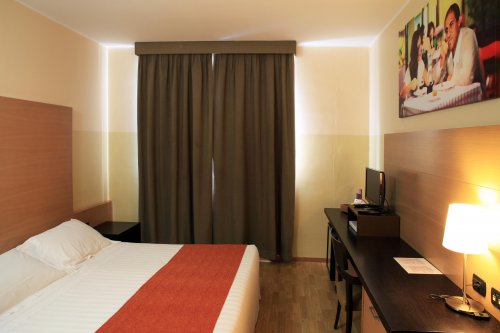 From Milan Central Station, take the MM2 underground line (the green line) to the Cologno Sud station. The hotel is located 800m away from the exit, towards the Mediaset tower.