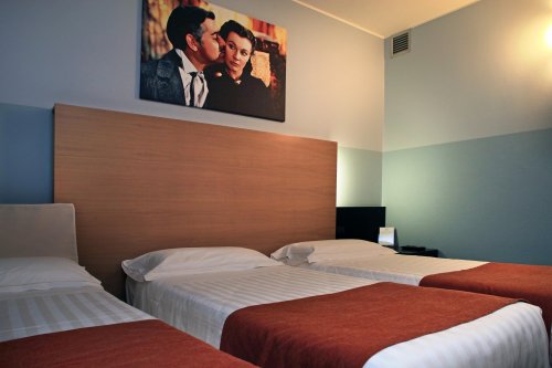 The hotel is characterised by a unique, original style based on a cinematic theme: from the hotel's sign - shaped like a film reel, to the large posters and panels in the bedrooms and public areas decorated with scenes from famous films.