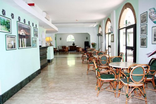 The hotel is set on four floors served by lifts and is completed by three annex buildings (two of which are used for apartments with the residence formula), offering 100 comfortable rooms, spacious meeting and restaurant halls, bar, 24 hour reception, outdoor Olympic swimming pool (open from June to September), 7 regular soccer fields and 1 synthetic grass soccer field with a stand of 400 capacity, 5 concrete tennis courts and 1 completely equipped synthetic tennis court, spacious park with private ‘solfatara’ (shallow volcanic crater) often displaying volcanic manifestations.