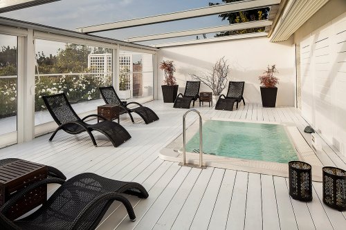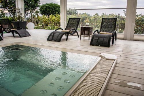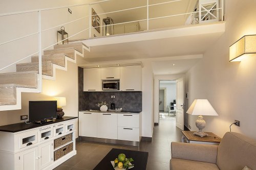 Le Junior Suite, invece, si trovano al piano giardino e presentano patio arredato, zona soggiorno con angolo cottura accessoriato, divano letto, il letto matrimoniale in soppalco. Possono disporre sino a 2 letti aggiuntivi nel divano letto.
