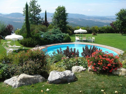 Nell'ampio giardino sono situate due bellissime piscine immerse nel verde ed un piccolo parco giochi per bambini.