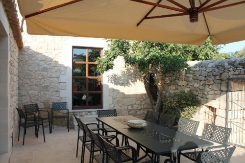Immersa in un bosco di carrubi e ulivi secolari, la struttura offre un paesaggio incontaminato, ordinatamente scandito dai muri a secco e dalle masserie di pietra bianca.