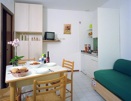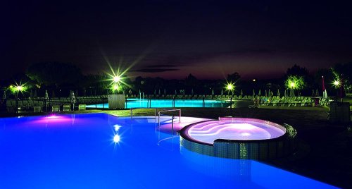 Do dyspozycji jest bar, basen, wypożyczalnia rowerów, motorowerów i kajaków, a także przestronny amfiteatr, w którym w sezonie letnim organizowane są liczne animacje, przedstawienia i wieczorki taneczne z muzyką na żywo.