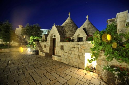 - one suite (sleeps 4-6) measures 100 square metres and consists of 3 trulli, it features a bedroom, a lounge, a kitchen and two bathrooms.