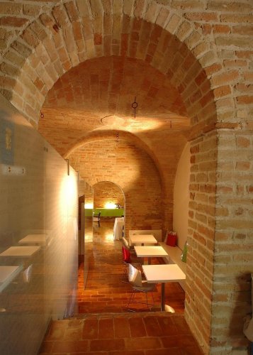 In the "Gran Gourmet Il Cantuccio" Restaurant, which is annexed to the Villa dei Priori, a modern and minimalist décor was preferred. The rooms of the Restaurant were created from the ancient Cellar of the Villa and are characterised by royal vaulted arches and flooring in original terracotta tile.