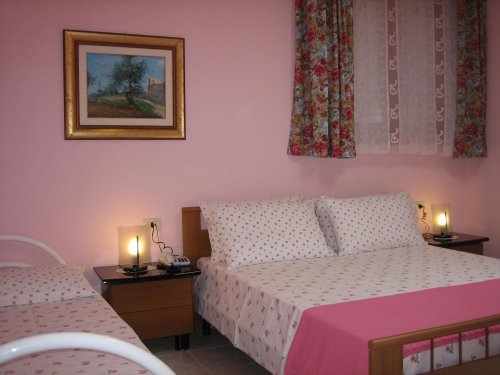 Apartment for 3 people: includes a double bedroom (an additional single bed can be added upon request), a kitchen with an oven and a refrigerator, a colour television, air conditioning, heating, sheets and towels, an outdoor veranda overlooking the swimming pool with a table and chairs, and an en suite bathroom with a shower.