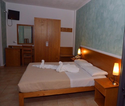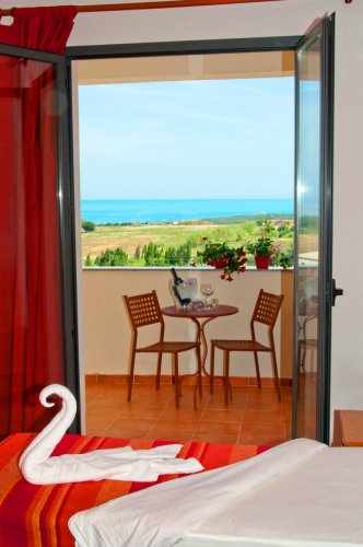 Comfortable and welcoming, this hotel has elegant guest rooms with a breathtaking view of the sea, a lovely massage swimming pool, a pool for children, a spacious garden, a bar area with a lovely panoramic veranda and extensive reserved parking.