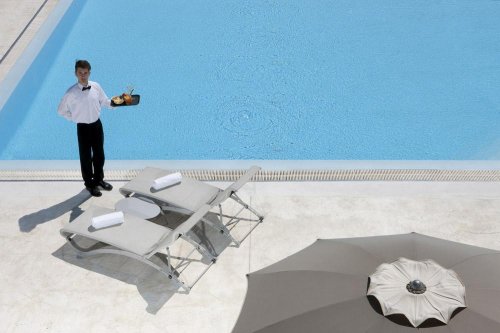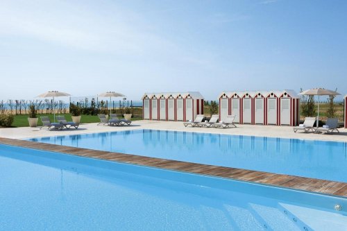 A infraestrutura está voltada diretamente para a praia e dispõe de uma ampla piscina com hidromassagem, espreguiçadeiras e guarda-sóis.