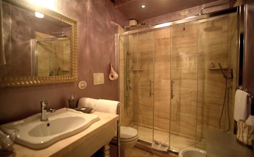 Le camere sono arredate tutte con mobili di pregio, e dotate di mini frigo, riscaldamento, bollitore, orologio, servizi privati con vasca idro-massaggio Iacuzzi o doccia (o doppia doccia) idro-massaggio, ricco set di cortesia.