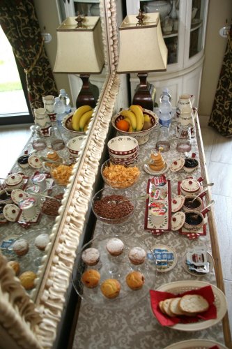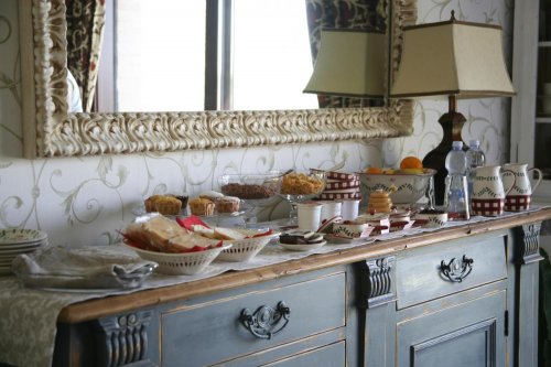 La colazione a buffet è composta di dolci e marmellate fatte in casa e molto altro .