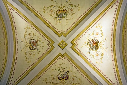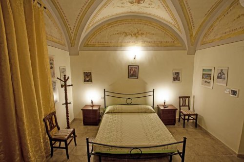 Alcune camere presentano soffitti affrescati e volte a crociera.