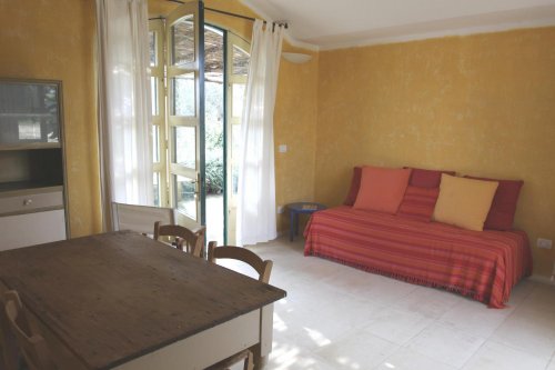 - Trilocale per 4 persone (70 m2) composto da soggiorno/pranzo, camera matrimoniale, camera da letto doppia, bagno, giardino interno. A disposizione degli ospiti fornitura stoviglie, lavatrice, lenzuola e asciugamani.